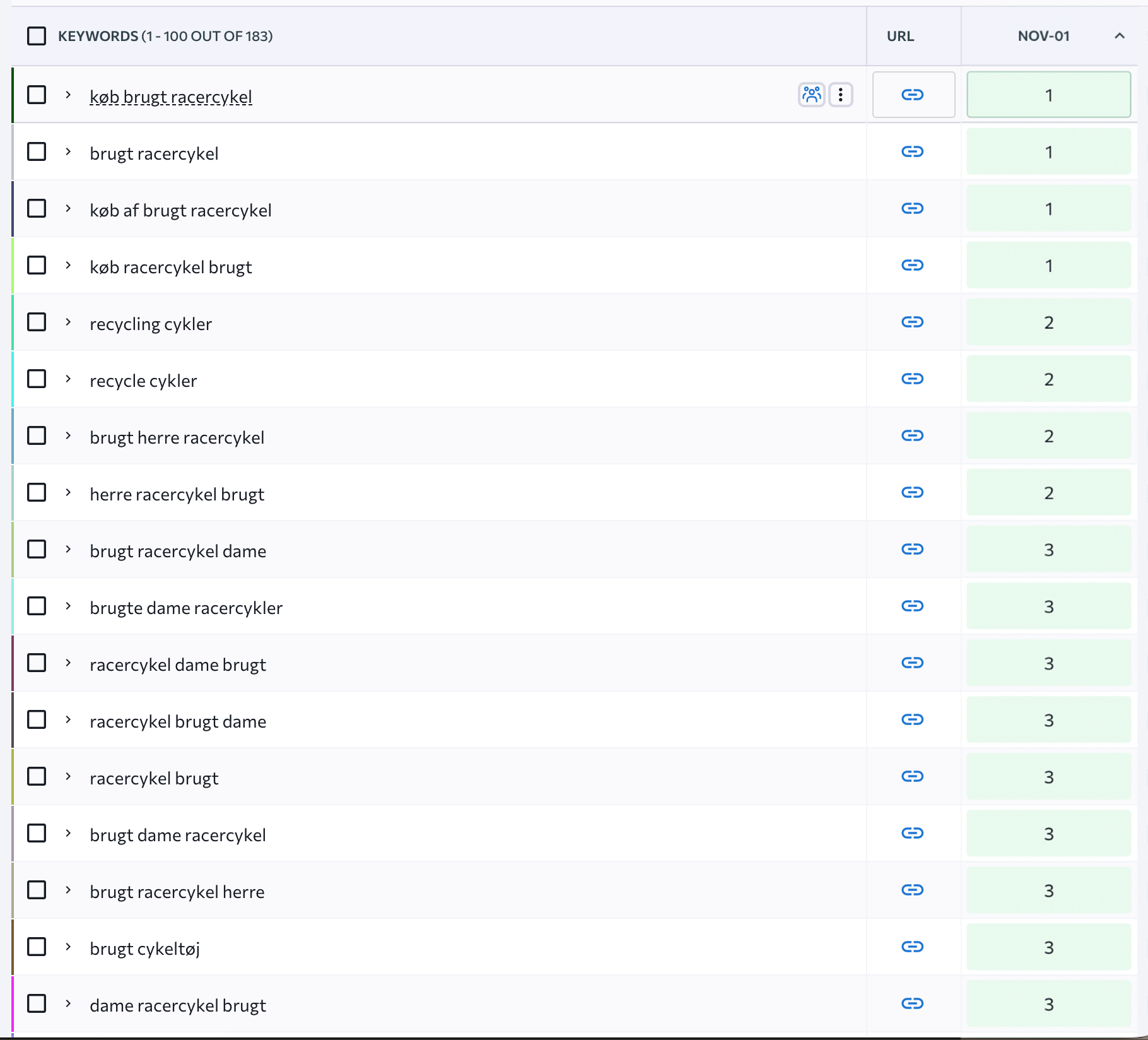 På under seks måneder har vi med BikeRecycle opnået resultater, der normalt tager år. Vi har overhalet giganter som DBA og Buycycle.com – noget, der nærmest er uhørt på så kort tid. For at være helt ærlige, blev vi selv overraskede over, hvor hurtigt det er gået. Vi havde ikke forventet at opnå så høje placeringer så tidligt – især ikke på vores mest konkurrenceprægede short-tail søgeord.